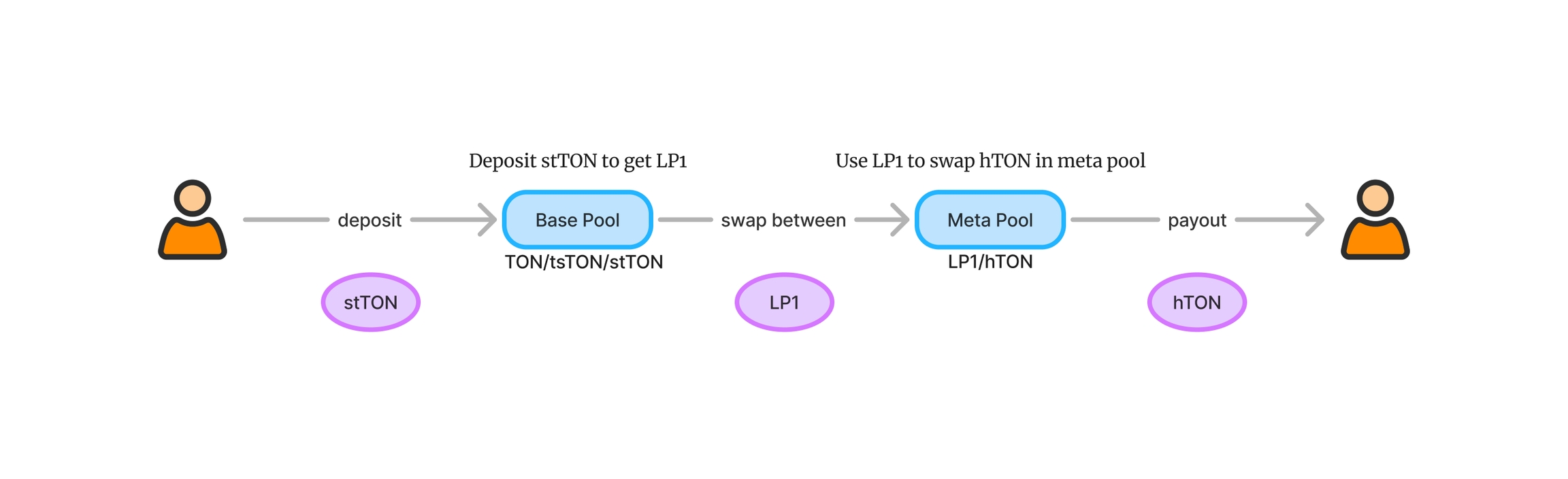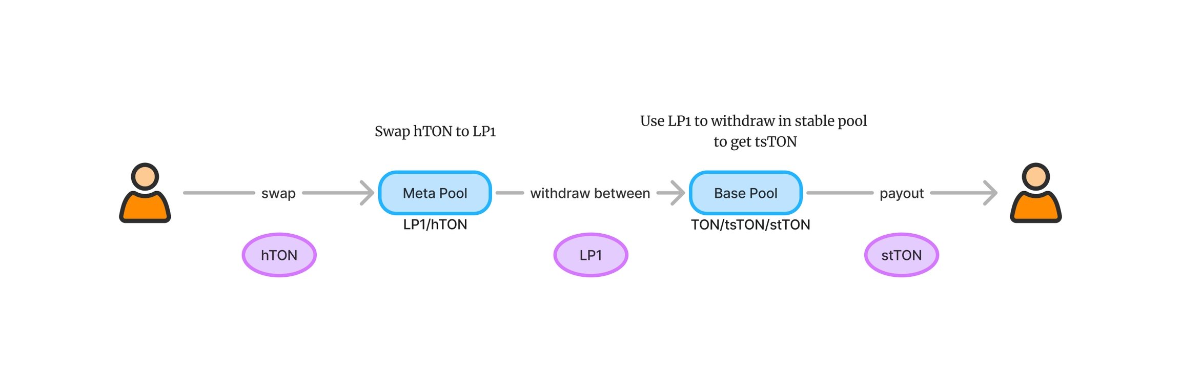 This process can also be performed using only the assets within the triTON Pool, without the need for hTON. In such cases, users can still achieve the deposit and deposit operation by utilizing assets directly from the Base Pool.
